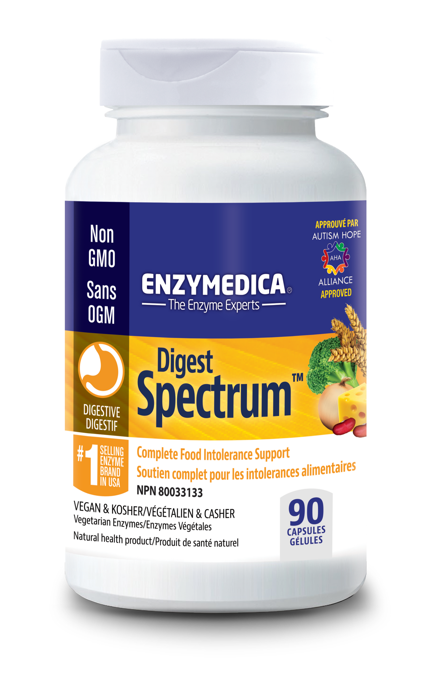 Enzymedica Digest Spectrum - Complete food intolerance support with a combination multiple strains of amylase, protease, lipase and cellulase with specialized enzymes for gluten, phenol, lactose, and casein digestion.