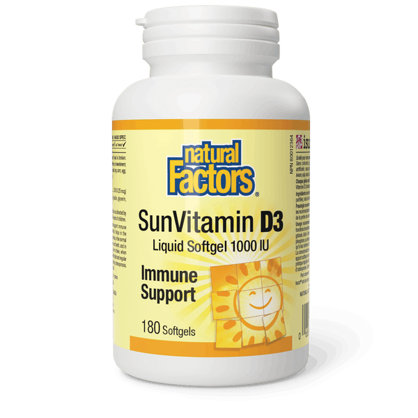 Natural Factors SunVitamin D3 - 1000 IU - Essential in the absorption of Calcium and Phosphorus, maintaining proper levels of Vitamin D in the body is critical for the development and maintenance of strong bones and teeth - particularly in growing children. Also important in later life for the prevention of osteoporosis and hypocalcemia, and as an immune booster and thyroid regulator, adequate quantities of this important vitamin should be part of everyone's diet.